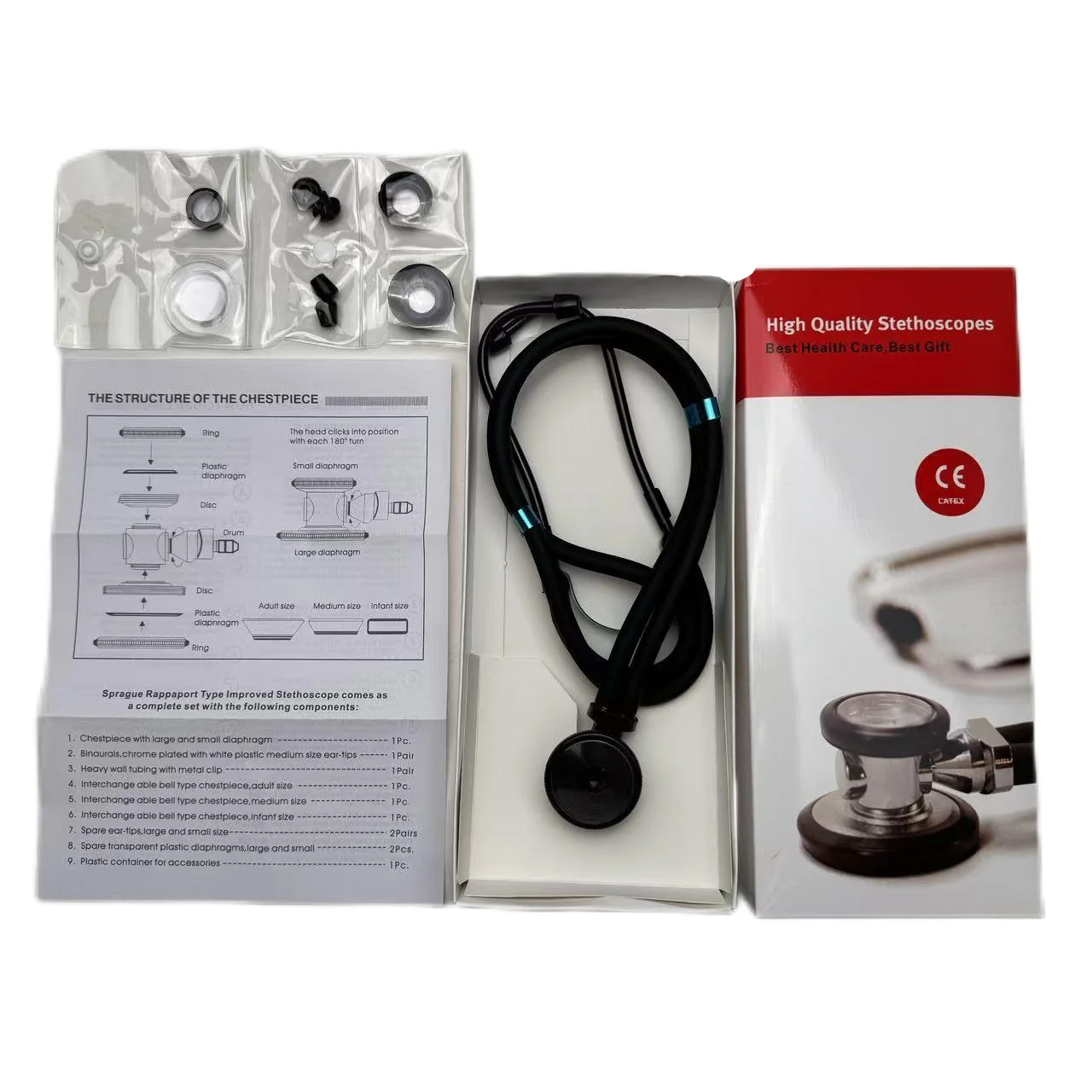 Top acoustics: with classic black color, this stethoscope is equipped with high-quality medical PVC tube, zinc alloy Chest Piece and high sensitivity fiber membrane with good auscultation effect, and even polyester earplug with good outside noise reduction. It also comes with two sizes of stethoscope bells to help you handle a variety of different stethoscope requirements. It can be widely applied for cardiovascular and respiratory auscultation in hospital, clinic, school, or home.